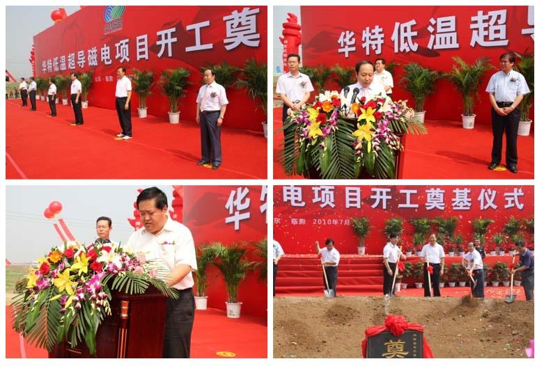 7月3日上午,華特新工業園區,彩旗招展,鼓樂喧天。低溫超導磁電項目開工奠基儀式在此舉行。中共濰坊市委書記張新起,濰坊市委副書記、市長許立全,濰坊市政協主席趙興濤,濰坊市人大副主任李守玉,中共臨朐縣委書記、縣人大主任劉建國以及參加市委市府點評的各縣市區領導和我縣縣直部門和重點企業的領導參加了奠基儀式。