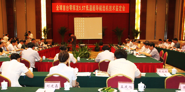 2012年6月30日,全球首臺零揮發(fā)5.5T低溫超導(dǎo)磁選機(jī)技術(shù)鑒定會勝利召開,參加此次技術(shù)鑒定會的有高新區(qū)副書記、管委會副主任張龍江、濰坊市科技局副局長張宏巖、濰坊高新區(qū)科技局副局長胡潔等5位政府領(lǐng)導(dǎo)、中科院理化所周遠(yuǎn)院士、中國科學(xué)院院士、學(xué)術(shù)委員會主任葉朝輝、中科院電工所嚴(yán)陸光院士、中科院高能所陳和生院士、中科院高能所王貽芳所長、公司董事長兼總經(jīng)理王兆連以及國內(nèi)知名專家、高能所團(tuán)隊(duì)、國內(nèi)礦業(yè)專家。低溫超導(dǎo)磁選機(jī)的研發(fā),是新力超導(dǎo)公司與中科院高能所合作取得的又一項(xiàng)重要成果,也是低溫超導(dǎo)技術(shù)在產(chǎn)業(yè)化進(jìn)程中取得的重大突破!