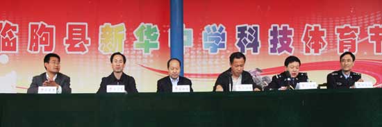 5月3日上午,臨朐縣公安局“刑警•華特磁電杯籃球賽”在新華中學體育場舉行開幕儀式,縣公安局領導出席,公司董事長兼總經理王兆連在主席臺就座并致辭,向參加籃球賽的廣大干警表示祝賀。