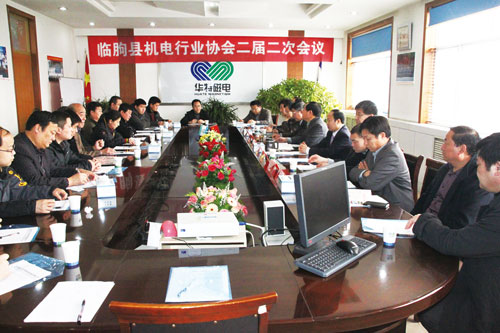 臨朐縣機電行業(yè)協(xié)會二屆二次會員大會于2014年1月15日在山東華特磁電科技股份有限公司會議室召開。大會應(yīng)到會員43人,實到35人,超過應(yīng)到會員人數(shù)三分之二。臨朐縣經(jīng)信局局長梅傳杰,副局長周德運,經(jīng)濟運行總調(diào)度長李玉凱參加大會。大會采用無記名投票方式選舉臨朐縣機電行業(yè)協(xié)會會長,王兆連以全票同意當(dāng)選會長。采用無記名投票方式通過《臨朐縣機電行業(yè)協(xié)會章程》《孔凡泉任臨朐縣機電行業(yè)協(xié)會法定代表人決議》,全票同意《章程》和《決議》。