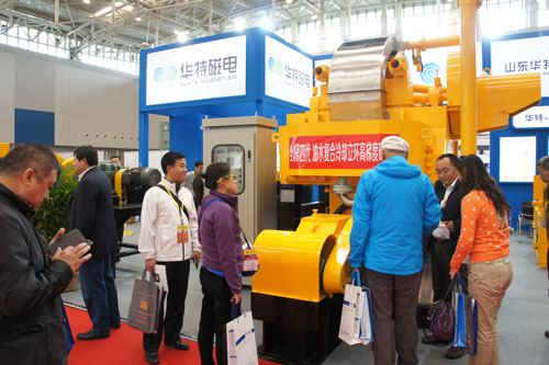 大會期間,我公司展示了油水復合立環高梯度磁選機、提精降渣磁選機、粉礦干選機等新產品樣機,同時以展板形式把新技術新成果展現給大家,吸引國內外眾多參會人員到我公司展臺參觀,我公司技術及業務人員對客戶做了詳細講解。