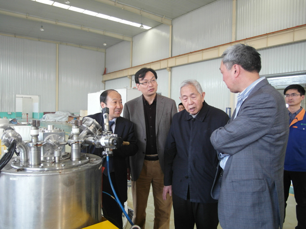 4月14日,武漢理工大學資環學院名譽院長、中國工程院院士余永富,武漢理工大學資環學院院長、墨西哥國家科學院院士宋少先,副院長池秀文,博導教授彭會清一行四人來公司參觀指導。14日下午,余永富院士一行在中國磁電與低溫超導磁體應用技術產業創新戰略聯盟理事長、華特公司董事長兼總裁王兆連,聯盟秘書長、公司副總裁劉風亮陪同下,首先來到華特全資子公司濰坊新力超導磁電科技有限公司,參觀了國家十二五科技支撐計劃項目,超導磁選機、超導除鐵器和核磁共振成像超導磁體生產基地,就共同關心的技術問題進行了深入交流和探討。余院士對超導磁電選礦技術未來服務金屬礦山提出了明確的方向,對未來超導磁電技術的推廣和技術進步具有深遠的意義和影響。武漢理工大學是中國磁電與低溫超導磁體應用產業技術創新戰略聯盟副理事長單位,在超導技術、非金屬礦除鐵應用與推廣方面,做出了積極努力。