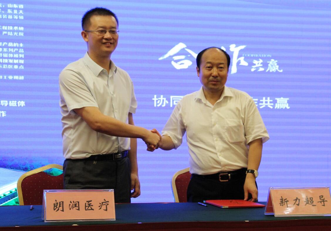 隨后蘇州朗潤醫療系統有限公司唐昕董事長與濰坊新力超導磁電科技有限公司公司王兆連董事長簽訂了5臺3.0T核磁共振分子成像超導磁體訂購合同,由此開啟了該磁體和整機系統的產業化之路。