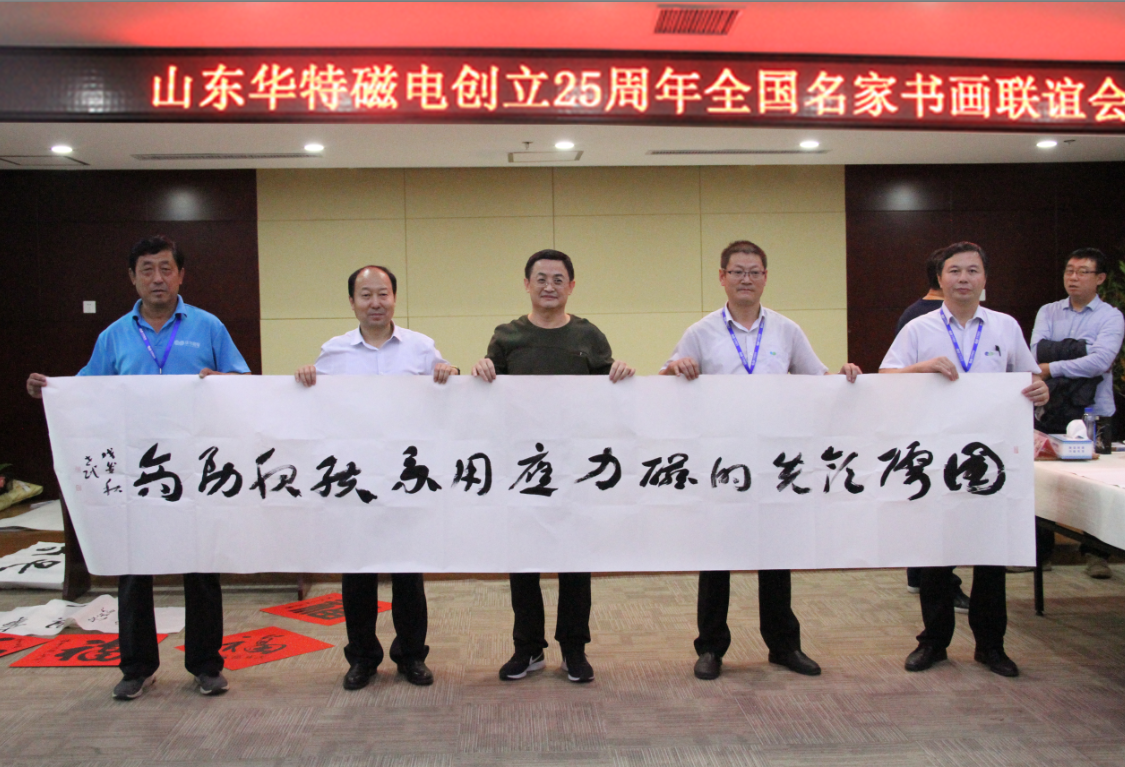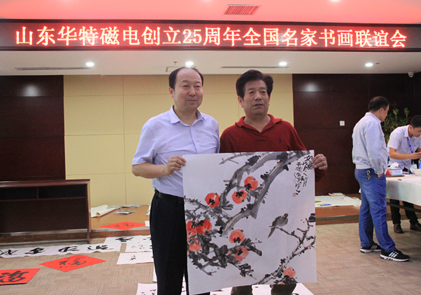 座談會上,王兆連董事長代表華特公司各位股東以及全體員工,向出席本次活動的各位領導以及書畫界的專家們表示熱烈歡迎。并表示,公司自1993年8月8日創立至今,歷經25年風霜雪雨,在各級黨委、政府的大力支持下,在社會各界的熱情幫助下,在全體員工的不懈努力下,取得了跨越式發展,由創業之初的一間辦公室、兩間茅草屋發展成為知名的磁電裝備制造業領軍企業。二十五年的艱辛歷程凝練出了華特特有的,具有旺盛生命力、務實、高效、團結的企業文化。此次聯誼會的成功舉辦,是各位書畫名家用精美作品向華特公司25周年華誕獻上的一份精神厚禮,這將作為慶祝“華特創立25周年”宣傳紀念活動的重要組成部分,在公司創新發展歷程上留下濃墨重彩的一筆。今天有幸借此機會,同所有的書畫愛好者們,一起分享各位德藝雙馨的書畫藝術家帶來的全新視覺體驗,領略藝術美的韻味,感受傳統文化的魅力!