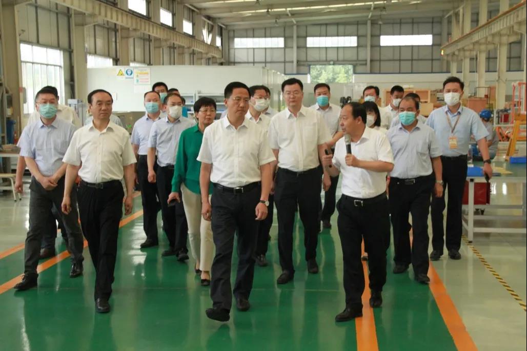 7 月 6 日上午,市委書記、市人大常委會主任惠新安、副市長田民利 、市委副秘書長、辦公室主任宋立軍、市委副秘書長、政研室主任呂堯良、市地方金融監管局黨組書記劉錫田、人民銀行濰坊市中心支行行長吳金忠、濰坊銀保監分局局長李明強一行 12 人,在市高新區黨工委書記、管委會主任宋赤鋒,黨工委副書記、管委會副主任趙文君、管委會副主任李濤、高新區金融中心主任熊福濤等領導的陪同下,蒞臨新力超導公司調研穩金融暨金融服務中小企業發展情況,了解政府為新力制定的“一企一策”的政策落實情況。山東省政協常委、公司董事長王兆連、奧新醫療公司董事長高滬光、蘇州朗潤醫療公司副總經理徐春明陪同參觀調研。