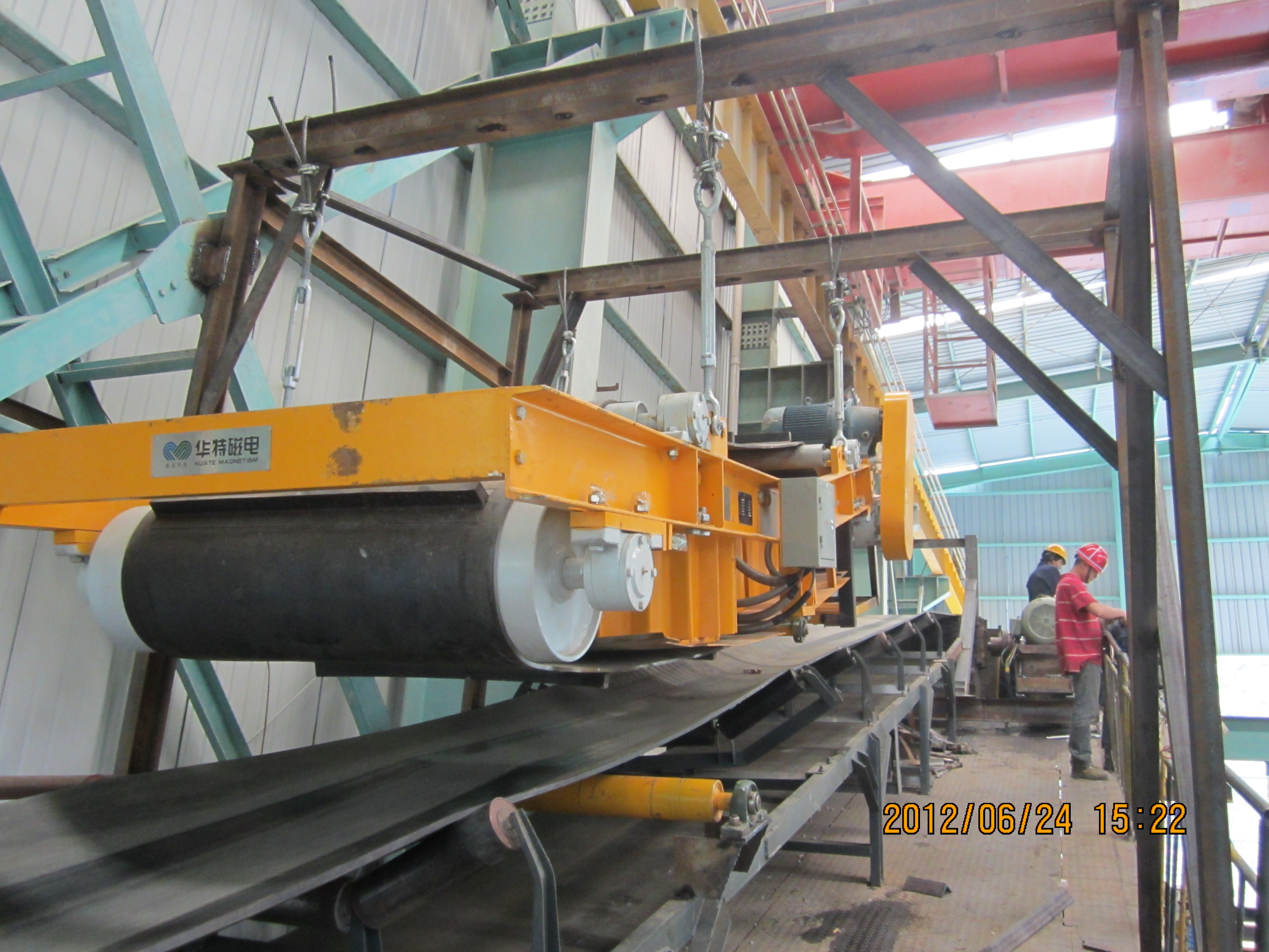適用于原礦石、燒結礦、球團礦、塊礦等磁性礦石輸送皮帶上除鐵。HTK磁性礦除鐵系統依靠其獨特的磁路設計對所選物料進行多次分離,從而將鐵磁性雜物以帶礦量最少的方式從磁性礦物料中吸除,達到保護后續破碎設備的目的。